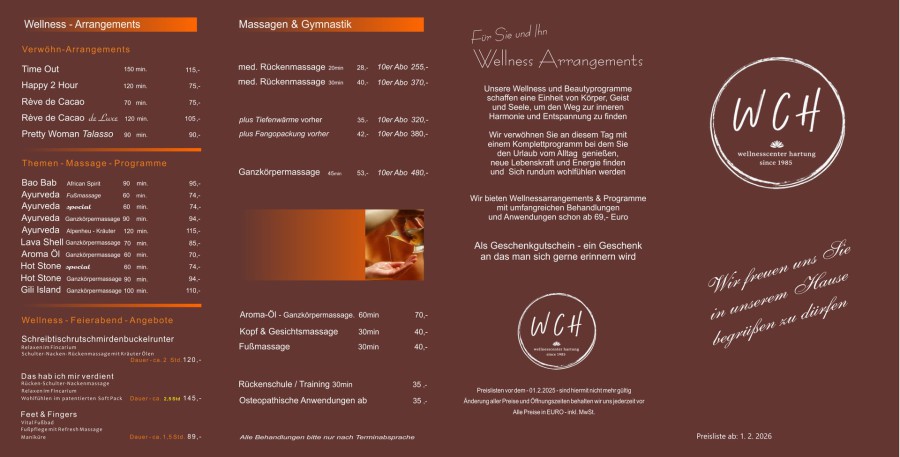für Leistungen vom Leistungserbringer - Wellnesscenter Hartung,